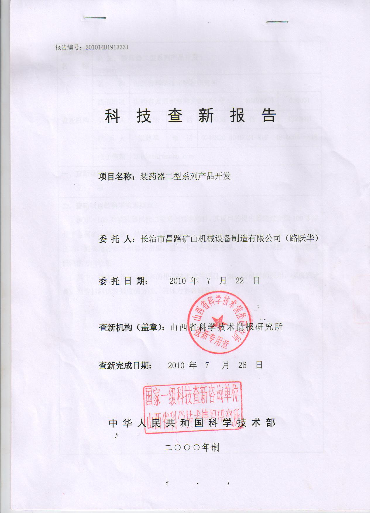 裝藥器二型開發科技查詢報告 國家一級科技單位
